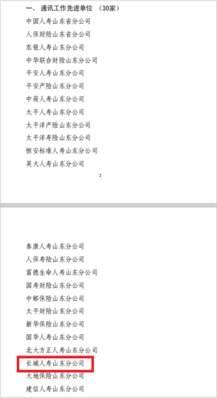3月4日,山东省保险行业协会对2021年度山东保险业通讯工作先进单位进行表彰,山东分公司从全省上百家会员单位中脱颖而出,荣获2021年度山东保险业通讯工作先进单位称号。
