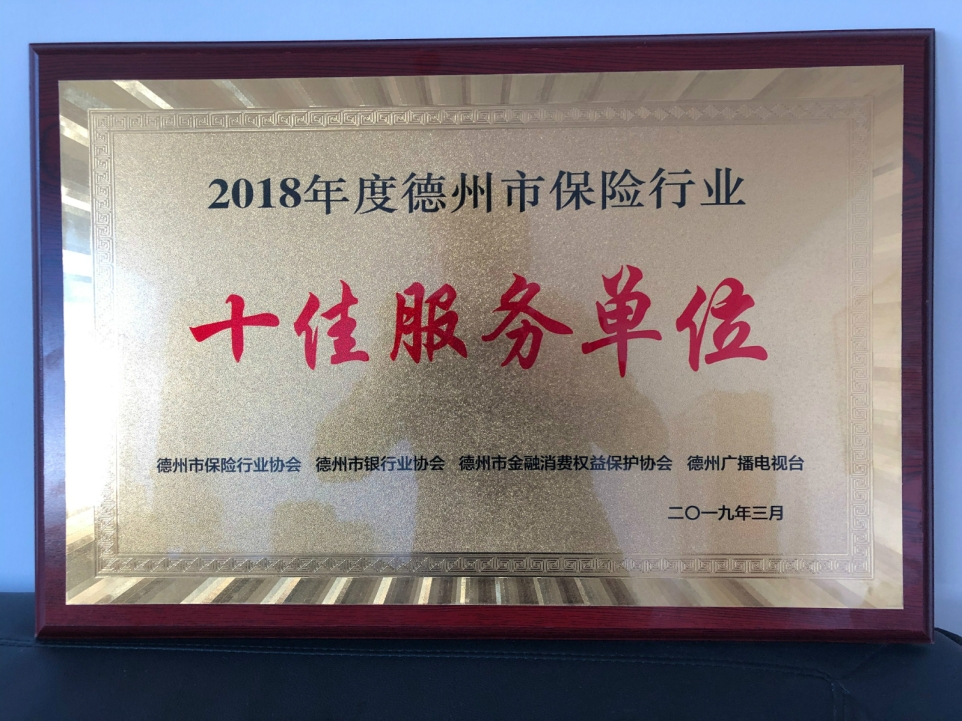 山东分公司德州中支荣获德州市“保险行业十佳服务单位”等两项大奖